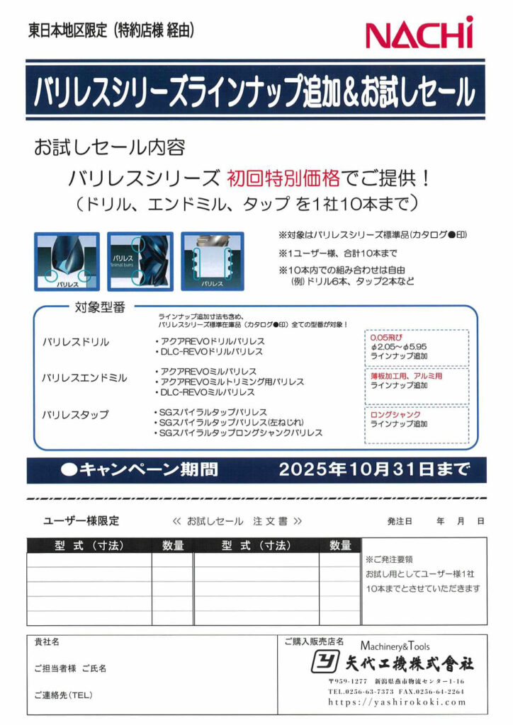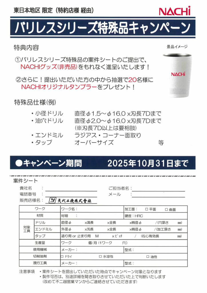 NACHI バリレスシリーズキャンペーン(~10/31)