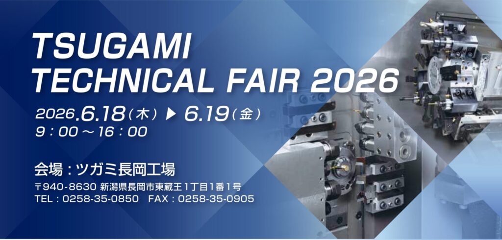 ツガミ長岡工場におきまして今年も行われる「ツガミテクニカルフェア2026」のお知らせです。